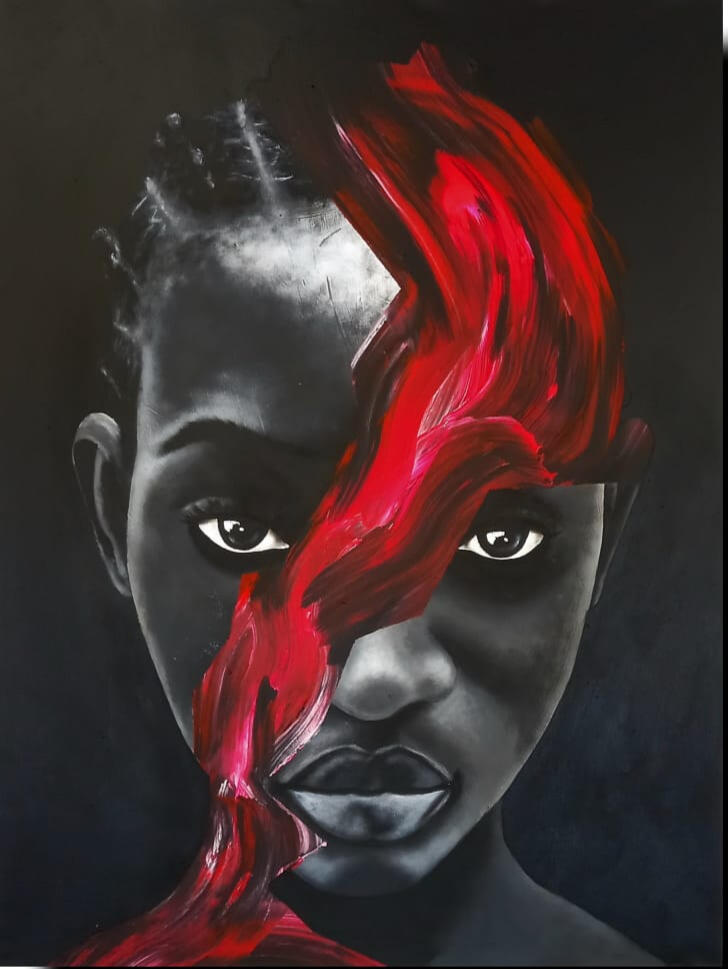 Sibusiso Makhunga, born and raised in Richards Bay Kwa Zulu Natal (KZN), is a self-taught artist who quit his 9-5 job to pursue his inner calling as an artist. He has been mentored by Thonton Kabeya (an established Congolese artist). Among current and prior exhibitions this is one of his highlights, he sold out at the RnB turbine art fair in 2019 on his first group show with One Art Gallery followed by an exhibition in November at Bag Factory Summer Salon 2019.