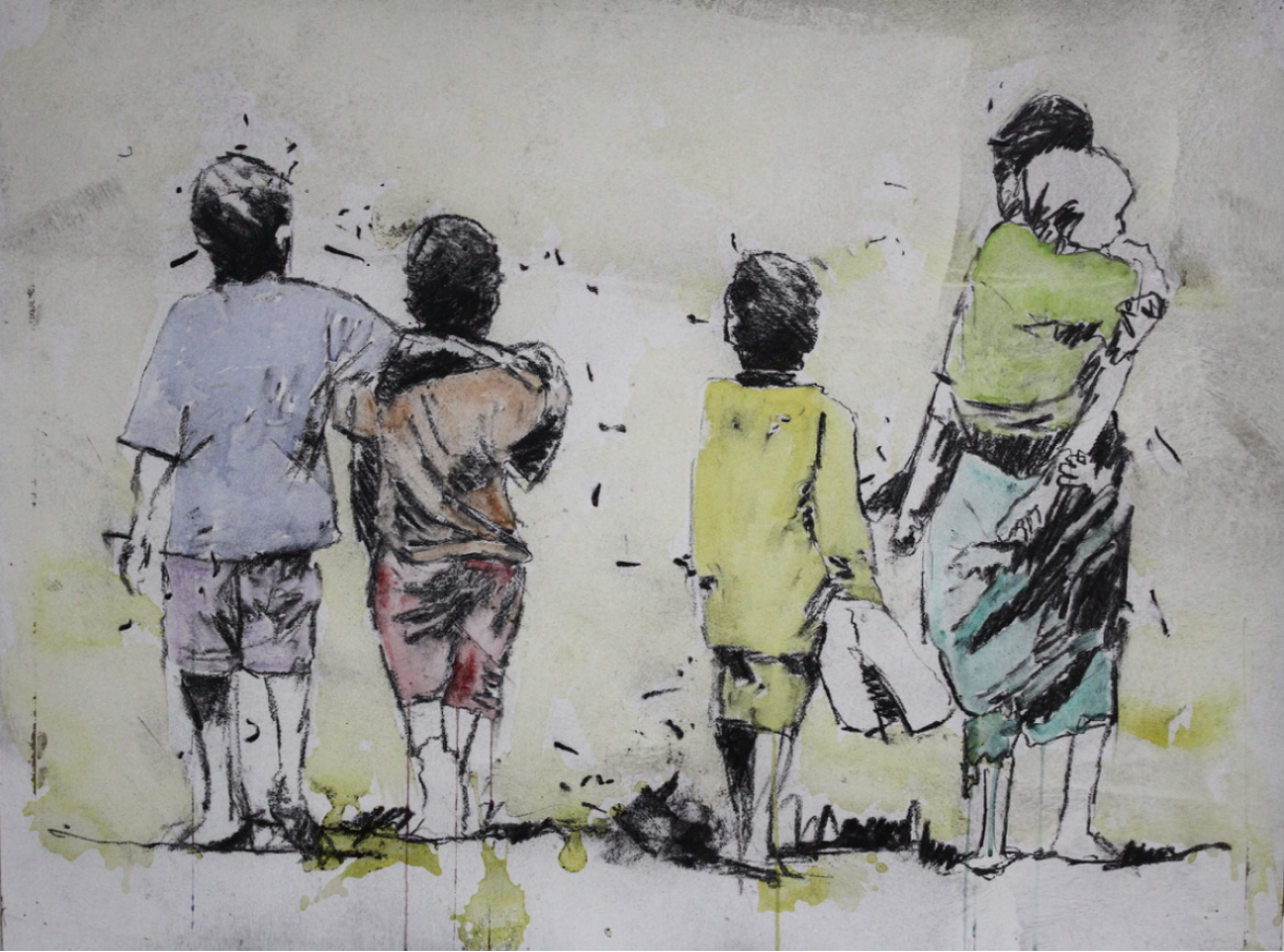 “Part of him is in me” Lebohang was named after his grandfather who was called Mfana Enoch Sithole. He says: “I am told that he was a musician and a prophet. Ironically, I was born on the same day that he died. Almost everything that my grandfather did during his lifetime is similar to my own life. He is the only person in my family with whom I feel really connected. My artwork is inspired by the journey travelled by grandfather who was a singer and organist for the Amajembe Jazz Band. It is about the fact that one can inherit a gene from a family member and be recognized as that person. When I visit my grandfather’s house, I feel like I have lived there. When I touch my grandfather’s instruments, I feel like I have played them. When look at his photos, I see myself. Looking at his strength and belief has encouraged me a lot as an artist. My work is dedicated to him. “In addition to his music-related drypoint monoprints in this show, Lebohang also included some prints about children and the challenges the face growing up, often with one or no parents. He believes that the environment into which a child is born determines the development of that child.